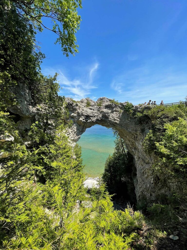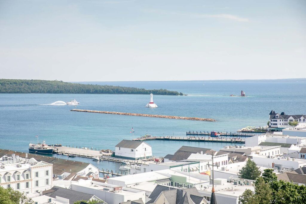 The M-185 Perimeter Tour is an 8 mile state highway that loops around Mackinac Island’s shoreline. From start to finish, the flat, smooth asphalt road places you right between dramatic forestry and the rocky shores of Lake Michigan and Lake Huron with majestic views of their deep blue waters.
