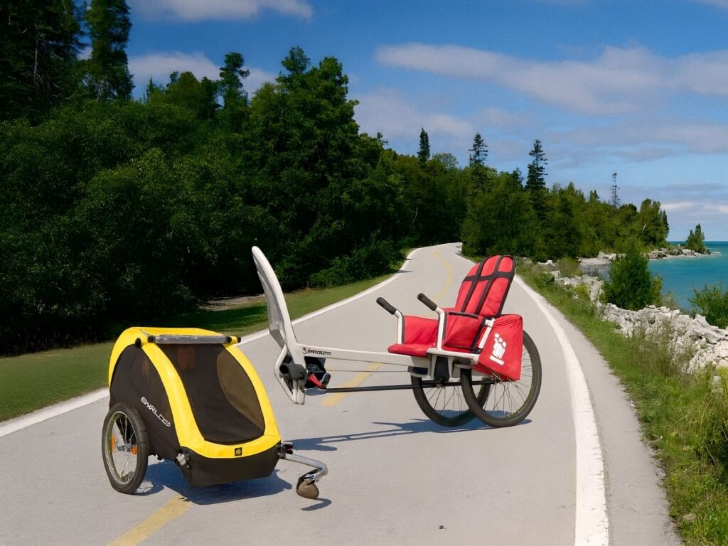 Of course. Our shop rents “trail-a-bikes”, “WeeHoo’s and Burley” trailers that carry up to two children. The trailers are clean and completely safe. Many are designed to handle your car seat for carrying infants 8 to 12 months old. Feel free to call us to discuss your particular child’s needs: 906-847-6337.